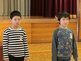12月25日(月)、2学期の終業式を行いました。インフルエンザなどの流行もなく、25名全員そろって終業式を迎えることができました。2年生6名が「2学期頑張ったこと」を元気に発表してくれました。学校長からは、「2学期のことを振り返ってみよう」ということとお正月についてお話がありました。児童指導主任からは、冬休みの生活について「勉強をがんばること」、「心のチャイムを鳴らして規則正しい生活をすること」、「学校にいるときと同じようにあいさつをすること」の3つのポイントが伝えられました。