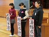 始業式では、まず6年生が3学期の抱負を四字熟語に表して発表しました。