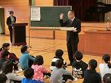 その後は、学校長から今回の訓練はどんな危険から身を守るものなのかの話があり、児童は真剣に耳を傾けていました。解散後は、各教室で学年ごとに反省も行いました。