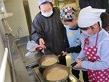 大豆を煎り、それを石臼ですり潰すときな粉が出てきて、児童からは多くの驚きの声が上がっていました。最後は、自分たちでつくったきな粉をおもちに付けて美味しくいただきました。