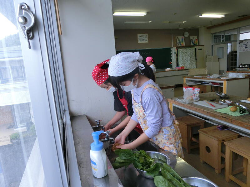 ほうれん草などを調理して、ゆで野菜を作りました。
