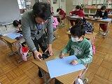 11月14日、4~6年生は外部指導者の方に版画指導をしていただきました。4年生は初めて、5・6年生は久しぶりの木版画ということで、彫刻刀の名前、使い方など、丁寧に教えていただきました。5・6年生が4年生に教えてあげる場面も見られました。4年生もお話をよく聞いて、安全に取り組むことができました。