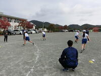 1学期に引き続き、今回もエイジェックの選手が来校し、子ども達に走り方の基礎について教えてくださいました。