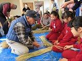 例年お世話になっている地域アシストネットの谷津さん、山中さん、川島さん、大阿久さんにご指導いただき、子どもたちは立派なしめ縄をつくることができました。また、みすぎの郷をご利用しているおじいさん、おばあさんが上手に縄をなっている姿に感動しました。