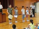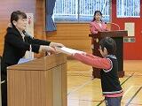 表彰では、給食週間と理科展覧会の入賞者が立派な態度で賞状を受け取りました。