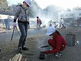 塩作り、つぼ焼き芋は、海水を汲みに行くことや、薪を割ったり新聞紙を丸めたりしてかまどの準備をすることから始まりました。北小の3人は、サツマイモに針金を刺したり、七輪で炭火を起こす作業を率先して引き受け、意欲的に活動していました。焼き芋は、大変おいしくできました。