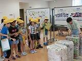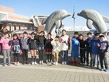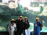 その後、大洗水族館に行きました。まず、イルカやアシカのショーに、子どもたちは大興奮。前の方の列に座った子どもたちは、カッパを着用し、思いっきり水を浴びていました。イルカの大ジャンプやアシカのフープキャッチで大きな歓声が上がりました。ショーを楽しんだ後は、フードコートで班ごとに昼食をとり、館内の見学に入りました。サメや熱帯魚など、珍しい魚に子どもたちは興味津々でした。実際にヒトデなどの生物を触れるコーナーもあり、とても楽しんでいました。
