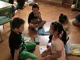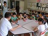 最初に自己紹介で、子ども達は自分の好きな食べ物や将来の夢について発表しました。それぞれ自分の夢をもっており、いきいきと話すことができました。