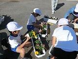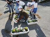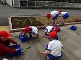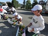11月4日、とちぎ花センターの宇賀神さんにお越しいただき、全校生でプランターにパンジーとビオラを植えました。宇賀神さんに植え方を教えていただき、共遊班ごとに好きな花を植えていきました。上級生が下級生の面倒をよくみてくれました。全校生でがんばり、色とりどりの24個のプランターが完成しました。これからは、学年で交代しながら水やりをしていく予定です。
