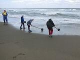 海浜ウォークラリーでは、活動班で協力して様々な課題に挑戦しながらゴールを目指しました。難しい課題もありましたが、北小と南小で力を合わせてがんばりました。指導員の方からも「全チーム、ハイスコアだね。」とほめていただきました。