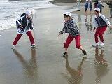 1日目。11月7日は、砂浜活動でビーチフラッグや尻相撲、砂の造形を体験しました。少し風が強く、寒かったのですが、子どもたちはたくさん体を動かして熱くなり、夢中になって取り組んでいました。夜には、岩舟地区交流会で、岩舟小、静和小の5年生とも一緒にゲームをして親睦を深めました。最初は緊張していたようですが、だんだんに打ち解け、新しい友達もできたようです。