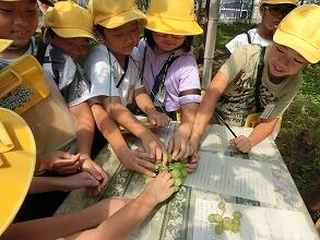 9月26日、3年生は地域にあるぶどう農家の見学に行ってきました。事前に農家のお仕事について学習したことをもとに、ボランティアティーチャーさんにお話を聞きました。ぶどう畑の中に案内されると、そこでぶどう作りのいろいろなお仕事について、教えていただきました。また、育てているぶどうの試食もさせていただきました。子ども達は、そのおいしさにびっくりしていました。この見学で知ったこと・分かったことをこれからの学習で生かしていきたいです。ボランティアティーチャーさんには、お忙しい中子ども達のためにお時間を作っていただき、ありがとうございました。