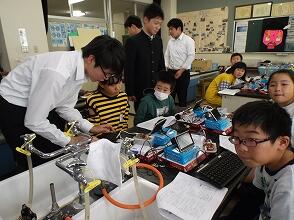 11月16日、栃木工業高校のみなさんを講師とした、プログラミング講座を実施しました。栃木工業高校情報技術科で開発された、「スカイベリージャム」で、LEDを意図的に点灯・消灯させたり、簡単なゲームを作ったりと、プログラミングを体験しました。自分が命令したとおりに、LEDがついたり消えたりすると、子ども達は歓声を上げて喜んでいました。また、簡単なゲームをプログラムし、ゲームが作動すると、みんな「すごい!」と夢中になって、操作をしていました。入力ミスがあるとうまく動かない、命令を一部変更すると違うことが実行できるなど、プログラミングの面白さを体験することができました。講師としてきていただいた栃木工業高校のみなさん、先生、貴重な体験をさせていただき、ありがとうございました。