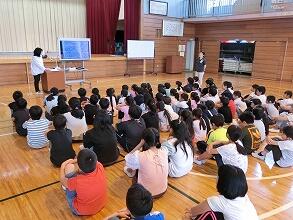 6月26日、保健・給食委員会の子ども達が企画した、児童集会がありました。今回は「歯と口の健康」についての集会でした。まずは委員会の子ども達が、ミニ劇を披露しました。内容は歯磨きをしっかりしようということでした。食べかすをそのままにしておくと、口の中に酸ができそれが虫歯の原因になってしまうそうです。その後は、ミニクイズが出されました。正解が発表されると、低学年の子ども達は「やったあ。」と正解したことをうれしがっていました。企画してくれた保健・給食委員会のみなさん、ありがとう。これからも口の中の健康に気をつけていきたいですね。