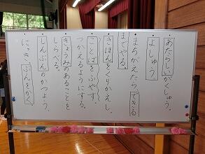 11月6日に、校長講話がありました。校長先生からは、次のようなお話しがありました。一つ目は2学期の目当てのことでした。あじさい目標の「さ」、最後までがんばること、そして「い」、いっしょうけんめい勉強すること、です。2学期も残り2ヶ月を切りました。目当てに向ってがんばりたいですね。もう一つはラグビーでよく使われた言葉、「One for all, All for one」についてでした。学習発表会での子ども達の発表は、この言葉に通じるものがあったと思います。
