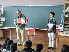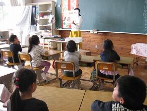 「りんごの会」の方による「よみきかせ」が行われました。2時間目は1~3年生、3時間目は4~6年生の子どもたちへ絵本や朗読、本の紹介など、様々なジャンルの読み聞かせをしていただきました。子どもたちは笑ったり、受け答えたりと、本にふれあい楽しい時間を過ごしました。4~6年生の時間の最後に紹介して下さった「ふたりのイーダ」という小説の結末を知りたくて、探しに図書室へくる子どももいました。ありがとうございました。