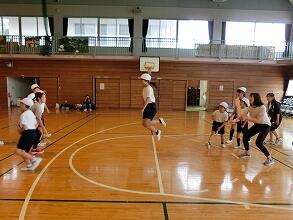 2月13日校内なわとび大会を行いました。各個人によるがんばった種目の披露、前持久跳びチャレンジ、あじさいっ子グループ対抗長なわとびを行いました。1年生もとても上手に跳べていました。みんな練習の成果があらわれ、とても上手に楽しく跳んでいました。