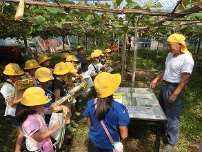 9月26日、3年生は地域にあるぶどう農家の見学に行ってきました。事前に農家のお仕事について学習したことをもとに、ボランティアティーチャーさんにお話を聞きました。ぶどう畑の中に案内されると、そこでぶどう作りのいろいろなお仕事について、教えていただきました。また、育てているぶどうの試食もさせていただきました。子ども達は、そのおいしさにびっくりしていました。この見学で知ったこと・分かったことをこれからの学習で生かしていきたいです。ボランティアティーチャーさんには、お忙しい中子ども達のためにお時間を作っていただき、ありがとうございました。