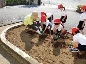 5月22日花壇の整備を行いました。草取りをしたり、ポーチュラカとニチニチソウの植え付けもしました。花壇がとてもきれいになりました。
