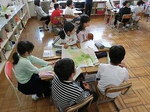 4月26日、1・2年生は、生活科の合同学習をしました。2年生が中心になり、1年生と交流会や学校探検を行いました。はじめは自己紹介をしました。手順を2年生に教わって、一人一人名前と誕生日を発表していきました。そしてペアを作っていよいよ学校探検に出発しました。校長室や職員室の見学を終えると、ペアになった2年生がそれぞれに学校案内をしました。「ここは理科室だよ。3年生から使うんだよ。」「ここは音楽室。これはピアノだよ。」2年生の優しい案内の声があちこちで聞こえていました。学校探検が終わった後は、みんなで「貨物列車」や「だるまさんがころんだ」などをして遊びました。楽しい時間になりました。案内してくれた2年生のみなさん、ありがとう。1年生もいろいろと学校のことが分かりましたね。