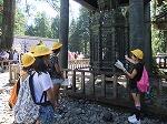 東武日光駅から、まずは日光東照宮へ。ここでは、総合的な学習の時間を利用してそれぞれが調べた「五重塔」や「三猿」「陽明門」「眠り猫」等について発表(ガイド)を行いました。たくさんの観光客の中で、彫刻のいわれなどを立派に発表しました。