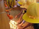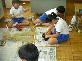 9月26日(金)に5年生が総合的な学習の時間に、保健室前の水槽で育てた稲を脱穀しました。お椀をつかって籾をとったり、割り箸で突っついて籾殻をとったりしました。これからも続けていきます。