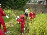 下級生も、鎌を上手に使って稲を刈っていました。また、上級生と協力して刈った稲を束ねることもしていました。みんなで食べる「喜多笑米(きたしょうまい)」が楽しみです。