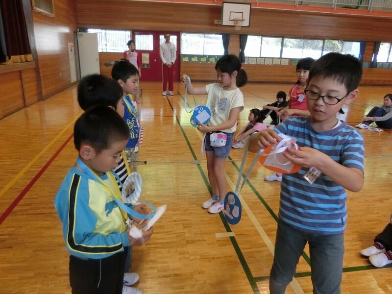 栃木県では、投力が他県に比べ大きく劣っているようです。ボール投げにつながる活動として、給食で飲んでいる牛乳パックを利用したブーメランを作り、投げる練習をしました。