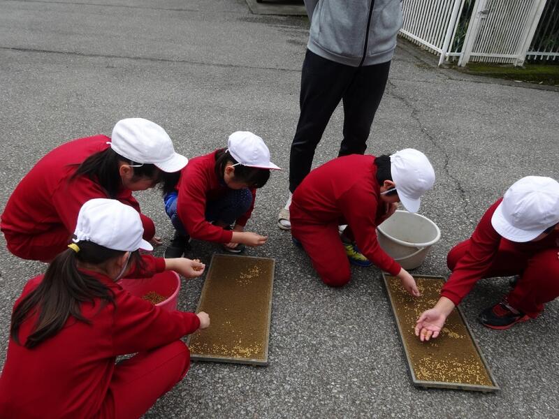 5月8日(火)に地域ボランティアの川島様のご指導のもと、「もみまき」をしました。今年の5年生は、「わたしたちの生活と米」というテーマで、総合学習を進めていきます。まずは、「喜多笑米づくり」から。毎年全校児童で行う「田植え」もリーダーとなってがんばります。