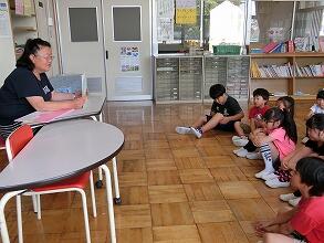6月5日読み聞かせボランティアの方たちによる読み聞かせが行われました。1、2年生には「じろうまるのはなし」のかみしばい、3年生には「がんばれ!名犬チロリ」を読んでいただきました。子どもたちは、楽しそうに聞いていました。