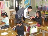 岩舟町では幼稚園・保育園と小学校のスムーズな接続を図るために、幼・保・小相互職場体験研修が行われています。 その一環として、10月29日(火)と30日(水)の2日間、しずわでら幼稚園の門間先生が本校にお越し下さいました。30日には、1・2年生の図工を指導して下さいました。ゴムの力で飛ばすおもちゃづくりに、子どもたちは目を輝かせて取り組んでいました。