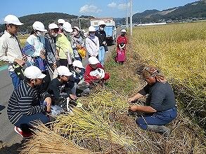 5年生も毎年お世話になっているボランティアさんに、稲刈り体験をさせていただきました。田植えはできなかったのですが、のこぎり鎌を使っての、稲刈りを体験しました。天気に恵まれ暑い日の体験とはなりましたが、教室ではできない貴重な体験となりました。また、飲み物をいただき、ありがとうございました。