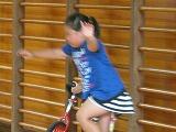 2校時後の休み時間には、体育館の縦の距離1/4まで進めていたのが、昼休みには、体育館を縦断。 それまでの練習の積み重ねが生きた瞬間でした。 毎日の積み重ねって、やっぱりすごいなぁ大事だなぁと思えた瞬間でした。 ほかの学年の児童も続々と縦断しています。 2年生も負けじと、練習を続けます。