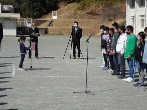 3月24日、令和2年度の修了式を実施しました。放送での実施でした。校長講話では、はじめに、4月からの子ども達の活動の様子を写したスライドショーを見ました。教室の子ども達は、いろいろとあった1年間の写真を真剣に見ていました。その後は、3・4・5年生の代表児童が「1年間の振り返り」を発表しました。3人とも緊張しながらも、しっかりとした口調で、作文を朗読しました。修了式を終えると、校長と教頭が各教室を回り、修了証を学年代表児童に手渡しました。「みなさん、1年間頑張りました。進級おめでとう。」一斉下校の時は、転校する2人とあいさつを交わしました。さみしいですが、新しい学校でも元気と笑顔で過ごしてくださいね。統合1年目が本日で締めくくりとなりました。保護者、地域の皆様、本校教育へのご協力、あらためてありがとうございました。これからもどうぞよろしくお願いします。