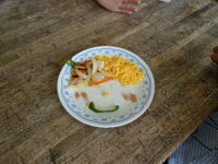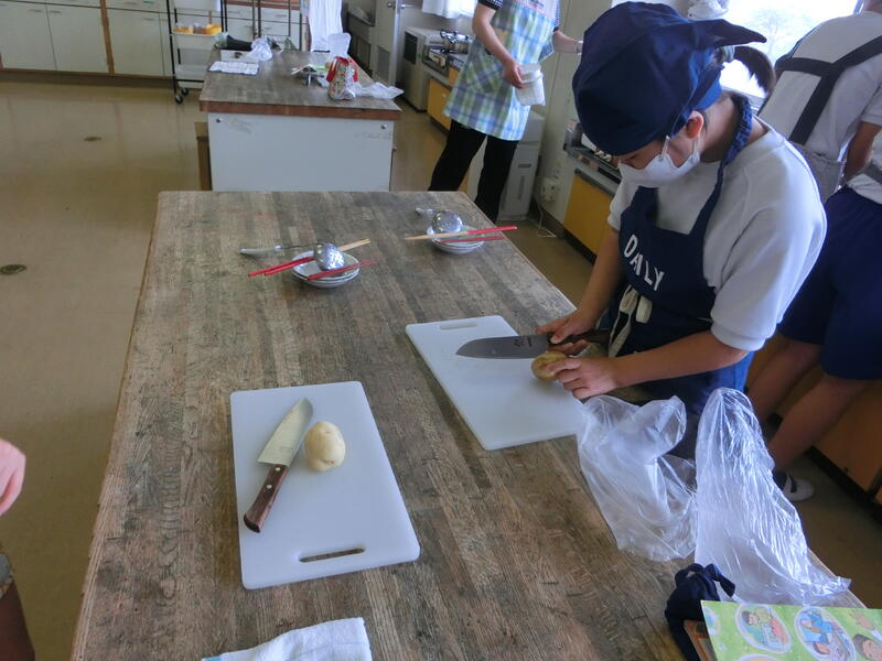 グループで協力して野菜炒めとスクランブルエッグを作りました。