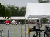 青空の下、スローガンである「力を合わせてあきらめない運動会」のとおり、最後まで全力で競技に取り組みました。