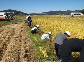 9月28日、5年生は稲刈りを体験しました。今年もボランティアティーチャーとして、小久保さんにお世話になりました。稲刈りまでのお米の生育の様子やその世話などについて教えていただいた後は、早速のこぎり鎌を使って稲刈りに挑戦しました。小久保さんがお手本を見せてくださったのですが、その手早さに、子ども達は驚いていました。天候にも恵まれたので、少し暑かったのですが、子ども達はいっしょうけんめいがんばりました。後で精米したお米を届けてくださるとのこと。家庭科の授業でそのお米を使って、調理実習をする予定です。お忙しい中教えていただいた小久保さん、改めてお礼申し上げます。ありがとうございました。