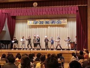 11月18日(土)学習発表会が行われました。4、5、6年生による合奏「アフリカン・シンフォニー」から始まり、1年生国語「くじらぐも」、2年生国語「お手紙」、3年生社会「社会科見学について」、4年生社会「都道府県」、5年生外国語「おむすびころりん」、6年生社会「日本の歴史」の発表を行いました。子どもたちみんな、今まで練習をしてきた成果を一生懸命に発表してくれました。アリスの会の皆様より朗読も行われました。見ている子どもたちも、とても楽しそうに見ていました。また、学校運営協議会の皆様による昔遊び体験も行いました。けんだまやお手玉など、とても楽しそうに体験をしていました。学校運営協議会の皆様、アリスの会の皆様、地域の皆様、保護者の皆様、ありがとうございました。