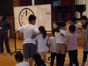 6月20日に行われた音楽集会の様子です。あじさいっ子グループに分かれて、声で音づくりをしました。グループ毎に決められた「とことこ」や「きらきら」等の言葉に、リズムや強弱をつけて音づくりをしました。6年生の班長を中心に、グループで話し合いながら音づくりをしていきました。表現力を高めるとともに、子ども達のコミュニケーション力向上のための取り組みでもあります。