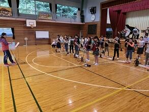 6月20日に行われた音楽集会の様子です。あじさいっ子グループに分かれて、声で音づくりをしました。グループ毎に決められた「とことこ」や「きらきら」等の言葉に、リズムや強弱をつけて音づくりをしました。6年生の班長を中心に、グループで話し合いながら音づくりをしていきました。表現力を高めるとともに、子ども達のコミュニケーション力向上のための取り組みでもあります。
