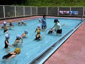 6月22日、1・2年生は3時間目にプールの授業を行いました。1年生ははじめてのプールの授業ですが、とても楽しそうに水の中に入って練習していました。2年生は、けのびやバタ足など、とても上手に練習していました。お家でぜひプールでの様子をお子さんから聞いてあげてください。