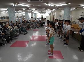 6月28日、4年生は安純の里訪問に行ってきました。総合の学習として4年生が自主的に行っている行事です。安純の里に到着すると、まず施設の案内を受けました。100人が利用できる施設だそうです。リハビリする場所や食堂の様子、おじいさんおばあさん達が暮らすお部屋の様子などを見せていただきました。その後は、ホールに集まっていただいたおじいさんおばあさん達の前で、練習してきたリコーダー演奏と歌の発表をしました。おじさんおばあさん達は、一生懸命に聞いていました。発表した後は、それぞれに交流をしました。目線を合わせ、優しくおじいさんおばあさん達に話しかけながら、肩たたき、手遊び、じゃんけんなどをしてコミュニケーションをとりました。中には、交流した後に感極まって涙を流すおじいさんやおばあさん達も見かけ、子ども達の訪問をうれしがっている様子が分かりました。4年生の子ども達も、大変積極的に交流をし、おじいさんおばあさん達の優しさを感じとっていました。充実した訪問になりました。