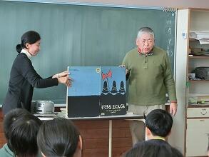 11月19日りんごの会の方による「読み聞かせ会」が行われました。2校時目は低学年対象で読み聞かせをしていただき、8冊の本を次々と読んでいただきました。大きな笑いが起こる本、子ども達が賛同する本、早口ことばや大型絵本と様々な本に、子ども達は聞き入っていました。3校時目は高学年対象で読み聞かせをしていただき、9冊の本を読んでいただきました。中でも、「魔女の宅急便」を放送劇というもので披露していただき、BGMの流れる中、子ども達は目を閉じて、語られる情景を想像しながら、耳を傾けていました。この読み聞かせのあとには、ここで披露していただいた本を探す子ども達が増え、その影響力の大きさを感じます。りんごの会のみなさま、いつもお忙しい中、ありがとうございます。