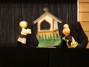 11月20日ロング昼休みの時間を利用して、体育館で「岩舟おはなしキャラバン隊」の方々による人形劇「さんまいのおふだ」が行われました。特設の舞台を持参していただき、みなさん黒子に扮して、楽しい歌や音楽に乗せて軽快に人形を操っていました。その動きやセリフに、子ども達も大笑いしたり、応援したりと楽しい時間を過ごしました。毎年、楽しいおはなし会を行ってくださる「岩舟おはなしキャラバン隊」の方々、ありがとうございました。