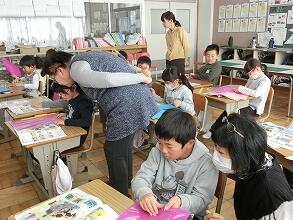 12月12日、2年生の図工に、ボランティアの方々が来てくださり、はじめてカッターを使う学習の指導をしてくださいました。カッターの使い方や切り方などを練習しました。おかげで上手に切れるようになってきました。お忙しいところ、ボランティアの皆様ありがとうございました。