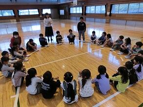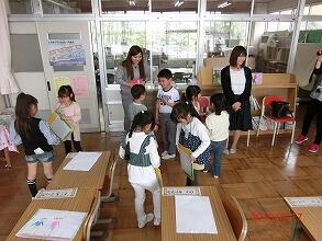 4月26日、1・2年生は、生活科の合同学習をしました。2年生が中心になり、1年生と交流会や学校探検を行いました。はじめは自己紹介をしました。手順を2年生に教わって、一人一人名前と誕生日を発表していきました。そしてペアを作っていよいよ学校探検に出発しました。校長室や職員室の見学を終えると、ペアになった2年生がそれぞれに学校案内をしました。「ここは理科室だよ。3年生から使うんだよ。」「ここは音楽室。これはピアノだよ。」2年生の優しい案内の声があちこちで聞こえていました。学校探検が終わった後は、みんなで「貨物列車」や「だるまさんがころんだ」などをして遊びました。楽しい時間になりました。案内してくれた2年生のみなさん、ありがとう。1年生もいろいろと学校のことが分かりましたね。