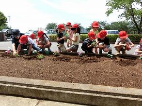 5月11日(土)休日ボランティアによる寄せ植え体験が行われました。とちぎ花センターの中で、職員の方が講師になって教えてくださいました。お花は、カーネーション、フレンチラベンダー、レースラベンダー、ラミウム、ワイヤープランツの中から選んで寄せ植えをしました。子どもたちみんな上手に寄せ植えができました。お花に囲まれて、とてもいい香りにも包まれて、とても楽しい時間でした。