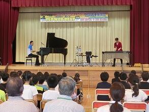 5月29日音楽鑑賞会が行われました。フラワービートのお二人が、マリンバ、ピアノ、打楽器を使って、迫力のある演奏をしてくださいました。また、台所用品を使って演奏してくれたり、子どもたちもリズムにのって、とても楽しく聞いていました。
