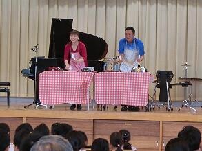 5月29日音楽鑑賞会が行われました。フラワービートのお二人が、マリンバ、ピアノ、打楽器を使って、迫力のある演奏をしてくださいました。また、台所用品を使って演奏してくれたり、子どもたちもリズムにのって、とても楽しく聞いていました。