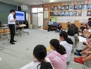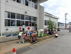 6月22日、授業参観・5, 6年親子携帯電話教室・親子ボランティア奉仕作業を実施しました。授業参観では、全クラス道徳の授業を行いました。どのクラスの子ども達も落ち着いて授業に臨み、真剣に考えている様子が見えました。今後も道徳の授業を要とし、豊かな心づくりに取り組んでいきたいと思います。また、5・6年生は親子携帯電話教室も実施しました。これから持つであろうスマホについて、どんなつきあい方(使い方)をすべきかを、親子で学びました。大変便利なスマホですが、あまりにも頼りすぎると、考える力や自律(立)する力に影響があることを知りました。スマホなどの情報機器のつきあい方を親子で考えるよい機会となったと思います。3校時は親子でボランティア奉仕作業に取り組みました。時折日差しが強まり、蒸し暑い中の作業となってしまいましたが、窓ふき、草むしり、トイレ掃除や側溝清掃など、普段できないような場所を、保護者のみなさんに協力していただきながら作業を行いました。おかげで校舎の隅々まできれいになりました。子ども達もそれぞれに一生懸命手伝いができていたと思います。最後になりましたが、お忙しい中参観や奉仕作業に来ていただき、ありがとうございました。また、資源物回収にもたくさんの方にご協力いただき、ありがとうございました。